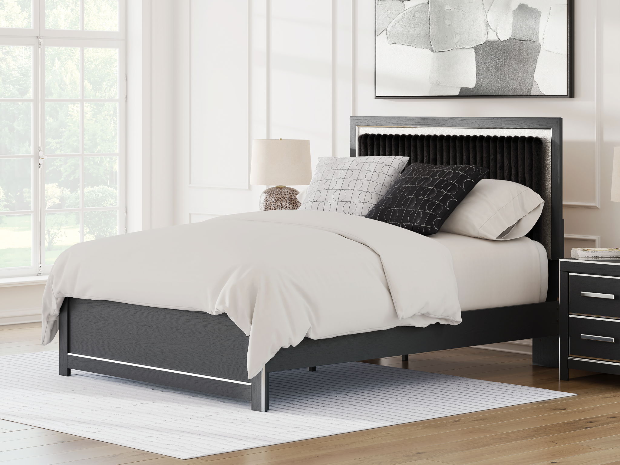 Zuraleus - Upholstered Panel Platform Bed With Roll Slats